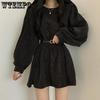 Women Temperament Pure Desire Wind Solid Color Lantern Sleeve A Line Dress Retro Design Sense Niche Long Sleeve Belt Corduroy Dresses