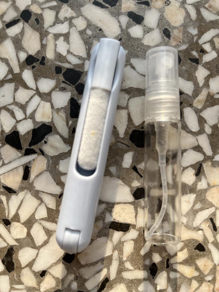 Lahvička čisticího prostředku je v podstatě prázdná – na jejích stěnách se srazily pouze zbytky. Viditelné škrábance na plastu, štětec v "propisce" je špinavý. Mám podezření, že výrobek byl používán…