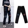 Evropská a americká vibrace ve stylu retro prošívání džíny pánské high street rovná trubka volný design smysl pro výklenek smažené pouliční kalhoty
