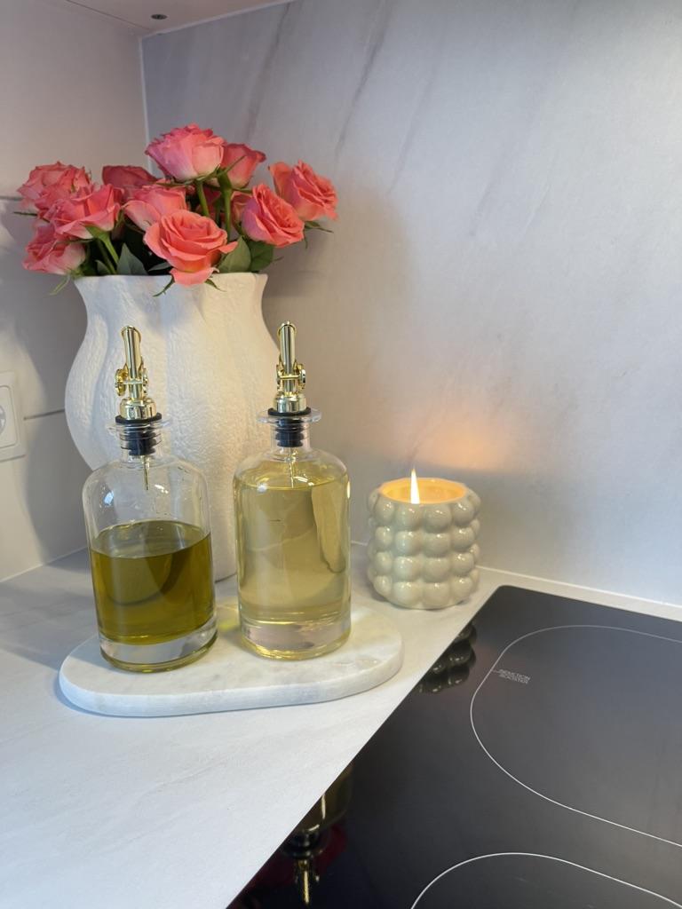 Dávkovač oleje a octa s kovovým nalévacím hrdlem, vážený nalévač, krutony na olivový olej, skleněná láhev na olivový olej | 500 ml, sada 2 ks — koupit online v obchodě na marketplace Joom