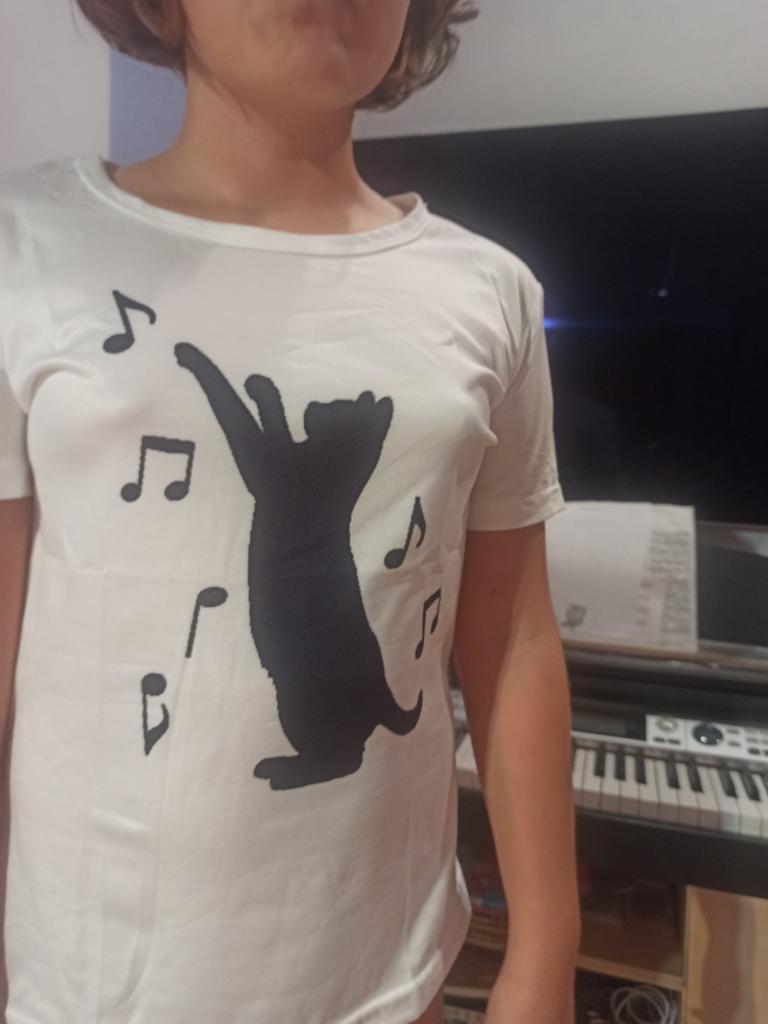 Super krásné tričko💯💯💯!!! Jemný na dotek, sněhově bílý, s černým, kvalitním, zajímavým potiskem🐈⬛🎶🎵. Velikost S byla ideální pro 9-10leté dítě, ale byla objednána pro ni, takže pokud chcete koupit tuto nádhernou věcičku, berte v potaz velikost - kupujte s rezervou, protože jí asi sedí malinko , látka se sice dobře natahuje, takže pokud chcete, vejdete se do větší podle velikosti osob. OBROVSKÉ DÍKY PRODEJCI ZA JEHO KVALITNÍ ZBOŽÍ, MAJETEK A POCTIVĚ PRÁCI!!!👍👍👍👍👍😘😘😘😘😘😘😘