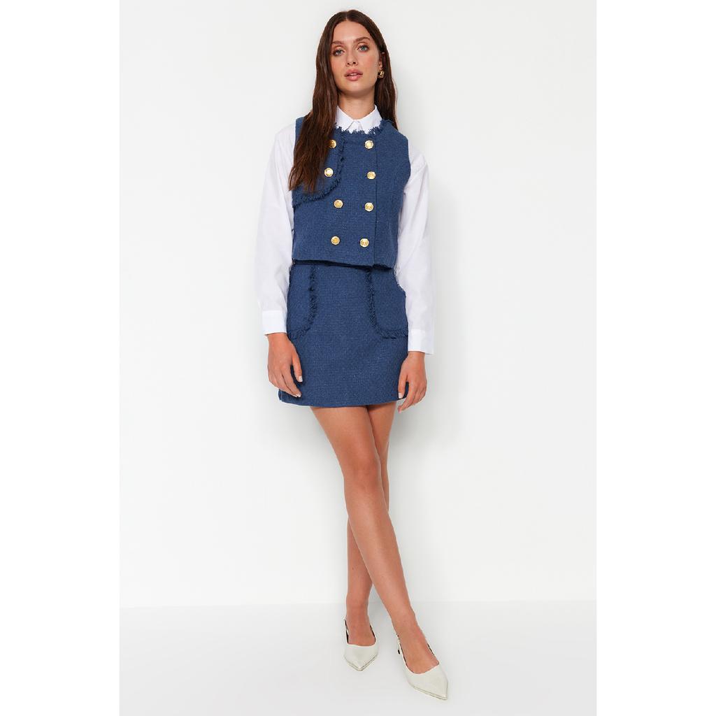 Detailní mini tkaná sukně z Indigo Tweed Fabric Tweed Twoaw24et00204 — koupit zboží online s dopravou zdarma po celém světě!
