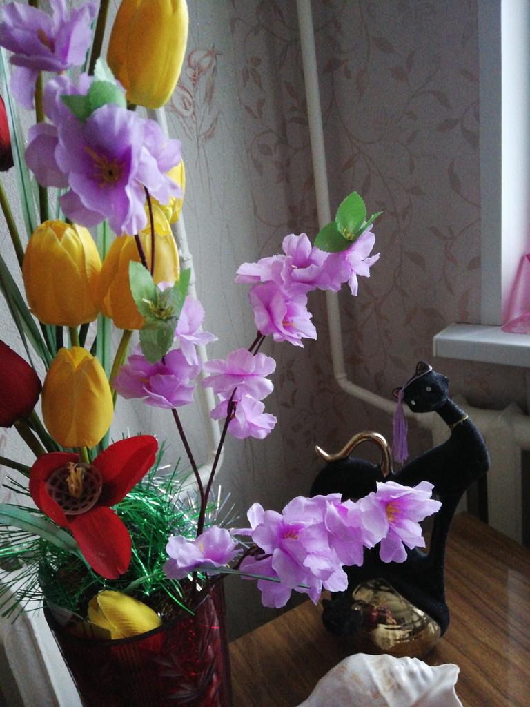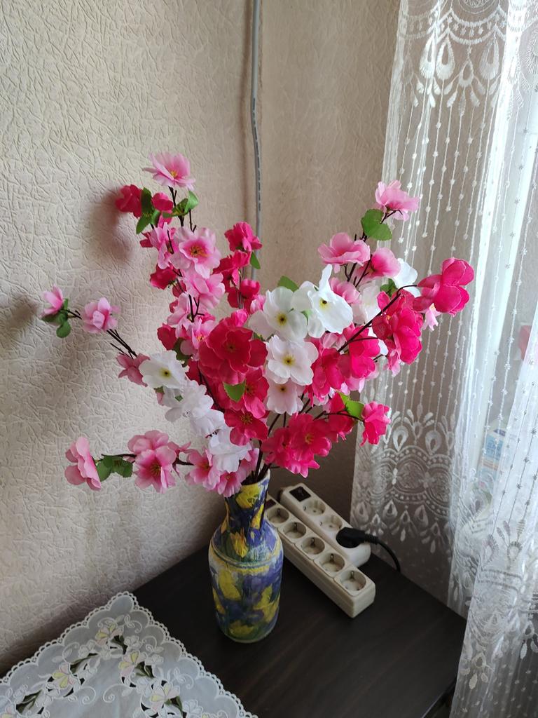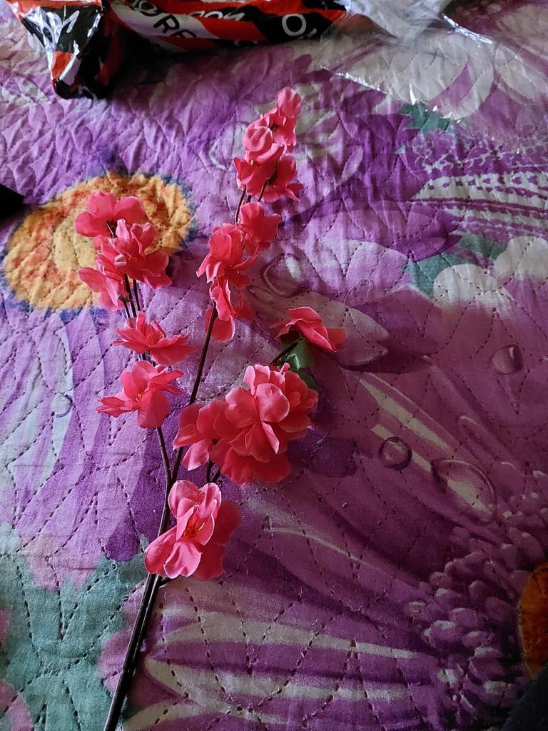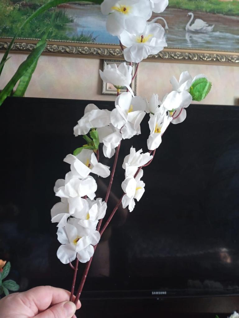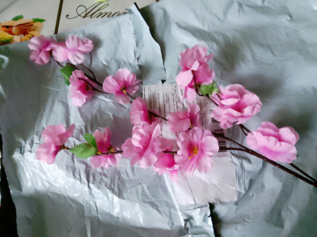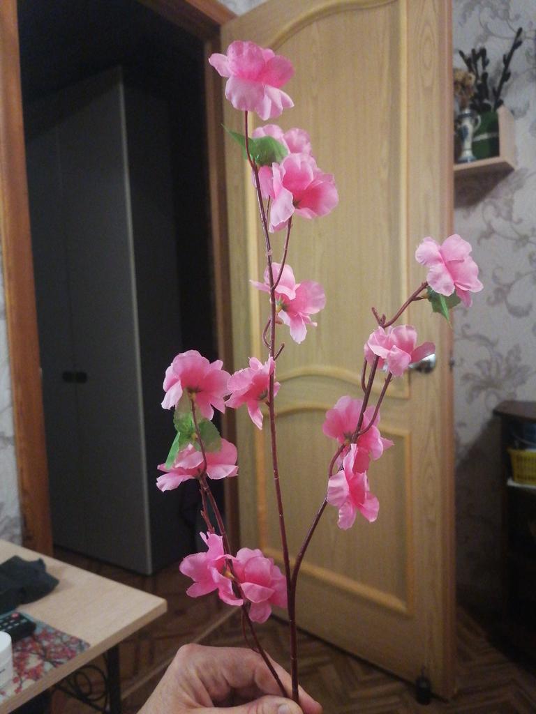 Dvě větvičky, každá se třemi větvičkami s květy. Vypadá to krásně, z dálky se to zdá skutečné. Dal jsem to na balkon, už se mě ptalo několik sousedů, kde jsem vzal takovou roztomilost