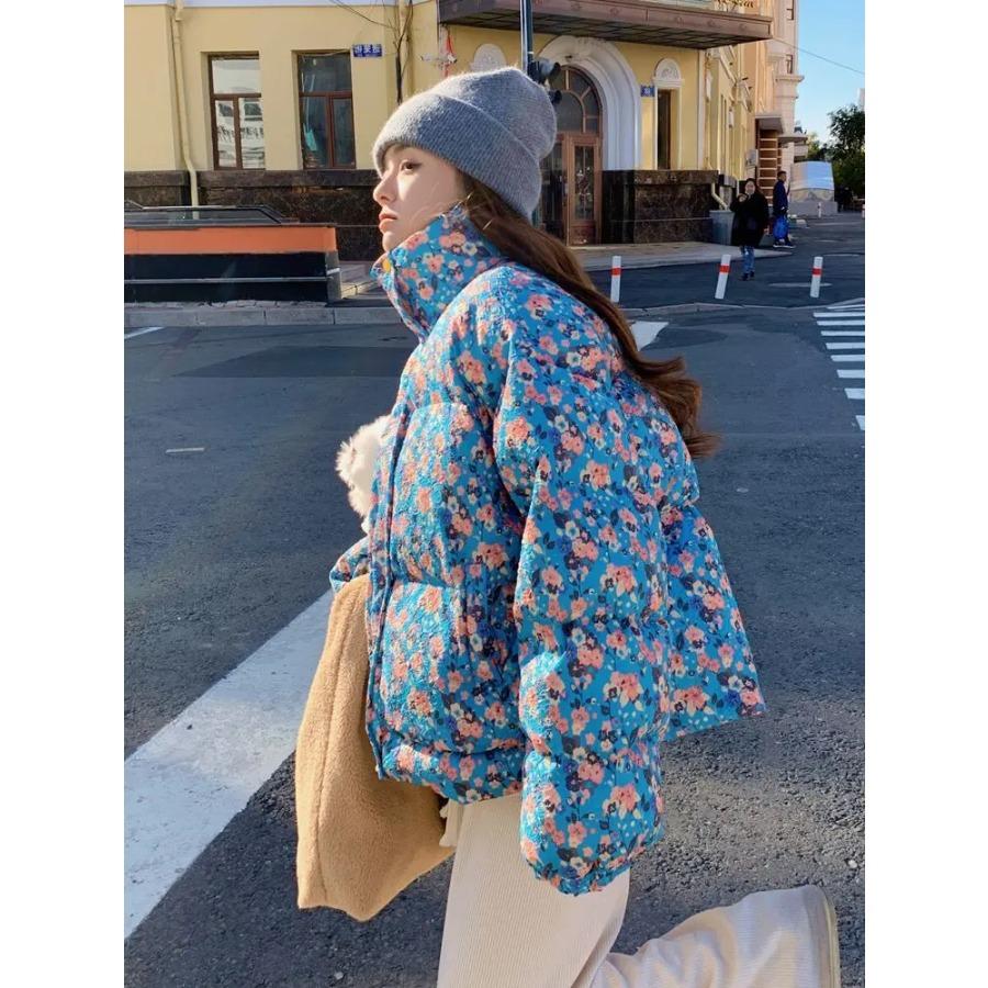 Dámská zkrácená květinová prošívaná bunda s květinovým potiskem Lehký vycpaný kabátek se stojáčkem na zip zateplené teplé oblečení — koupit zboží online s dopravou zdarma po celém světě!