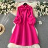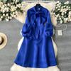 Dámské šaty ve sladkém stylu s mašlí Lucerna s dlouhým rukávem Jednobarevné šaty s vysokým pasem podzim zima 2024 Novinka