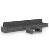 Este juego de muebles de ratán sintético es una combinación perfecta de estilo y funcionalidad. Con esto en el jardín, puedes pasar el rato relajándote y descansando con tu familia y amigos. Gracias al ratán PE resistente a la intemperie, el asiento es fácil de limpiar, resistente y adecuado para usar a diario. El sofá posee una robusta estructura de acero con recubrimiento en polvo, por lo que es muy duradero. Los cojines de respaldo y de asiento extraíbles están bien acolchados para ofrecer gran comodidad al sentarte. La mesa de centro, con un diseño sobrio, puede sostener tus libros, revistas y café para pasar un rato tranquilo y relajante. Además, con un notable diseño modular, todas las piezas pueden colocarse y personalizarse como quieras. Este juego de asientos sin duda será el centro de atención de tu jardín o patio. Nota: Recomendamos cubrir el conjunto en caso de lluvia, nieve y heladas. Color: NegroMaterial: Ratán PE, tela (100% poliéster), acero con recubrimiento en polvo, vidrio templadoSofá central:Dimensiones: 58,5 x 65,5 x 52 cm (ancho x profundo x alto)Anchura del asiento: 58,5 cmProfundidad del asiento: 60,5 cmAltura de asiento: 26 cmDimensiones del cojín de respaldo: 58,5 x 30 x 8 cm (largo x ancho x grueso)Dimensiones del cojín del asiento: 58,5 x 60 x 8 cm (largo x ancho x grosor)Sofá de esquina:Dimensiones: 78,5 x 65,5 x 52 cm (ancho x profundo x alto)Anchura del asiento: 58,5 cmProfundidad del asiento: 60,5 cmAltura de asiento: 26 cmAncho del reposabrazos: 20 cmAltura del reposabrazos: 33 cmDimensiones del cojín de respaldo: 58,5 x 30 x 8 cm (largo x ancho x grueso)Dimensiones del cojín del asiento: 58,5 x 60,5 x 8 cm (largo x ancho x grosor)Mesa de centro:Dimensiones: 90 x 50 x 26 cm (largo x ancho x alto)Grosor del vidrio: 5 mmRequiere montaje: SíLa entrega incluye::1 x Mesa de centro1 x Sofá central2 x Sofás esquineros con reposabrazos izquierdo2 x Sofás esquineros con reposabrazos derecho5 x Cojines de respaldo5 x Cojines de asiento Reclamaciones solo seran atendidas hasta 5 dias despues de recibido su pedido