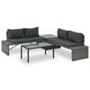Este juego de muebles de ratán sintético es una combinación perfecta de estilo y funcionalidad. Con esto en el jardín, puedes pasar el rato relajándote y descansando con tu familia y amigos. Gracias al ratán PE resistente a la intemperie, el asiento es fácil de limpiar, resistente y adecuado para usar a diario. El sofá posee una robusta estructura de acero con recubrimiento en polvo, por lo que es muy duradero. Los cojines de respaldo y de asiento extraíbles están bien acolchados para ofrecer gran comodidad al sentarte. La mesa de centro, con un diseño sobrio, puede sostener tus libros, revistas y café para pasar un rato tranquilo y relajante. Además, con un notable diseño modular, todas las piezas pueden colocarse y personalizarse como quieras. Este juego de asientos sin duda será el centro de atención de tu jardín o patio. Nota: Recomendamos cubrir el conjunto en caso de lluvia, nieve y heladas. Color: Gris y antracitaMaterial: Ratán PE, tela (100% poliéster), acero con recubrimiento en polvo, vidrio templadoSofá central:Dimensiones: 58,5 x 65,5 x 52 cm (ancho x profundo x alto)Anchura del asiento: 58,5 cmProfundidad del asiento: 60,5 cmAltura de asiento: 26 cmDimensiones del cojín de respaldo: 58,5 x 30 x 8 cm (largo x ancho x grueso)Dimensiones del cojín del asiento: 58,5 x 60 x 8 cm (largo x ancho x grosor)Sofá de esquina:Dimensiones: 78,5 x 65,5 x 52 cm (ancho x profundo x alto)Anchura del asiento: 58,5 cmProfundidad del asiento: 60,5 cmAltura de asiento: 26 cmAncho del reposabrazos: 20 cmAltura del reposabrazos: 33 cmDimensiones del cojín de respaldo: 58,5 x 30 x 8 cm (largo x ancho x grueso)Dimensiones del cojín del asiento: 58,5 x 60,5 x 8 cm (largo x ancho x grosor)Mesa de centro:Dimensiones: 90 x 50 x 26 cm (largo x ancho x alto)Grosor del vidrio: 5 mmRequiere montaje: SíLa entrega incluye::1 x Mesa de centro1 x Sofá central1 x Sofá esquinero con reposabrazos izquierdo1 x Sofá esquinero con reposabrazos derecho3 x Cojines de respaldo3 x Cojines de asiento Reclamaciones solo seran atendidas hasta 5 dias despues de recibido su pedido