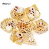 7 ks Žluté Zlaté Číslo Ostré Hrany Pryskyřičné Kostky Mnohostěnné Kostky Vhodné pro Hraní Rolí RPG Desková Hra