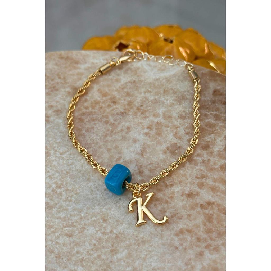 Personalized Letter Gold Plated Nostalgia Glass Beaded K Letter Twist Chain Bracelet