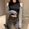 Colorblockové pulovry Módní ležérní sexy svetr Dámská slim mikina