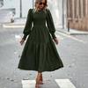 Dámské jednobarevné šaty s nafouknutým rukávem ve tvaru O Neck Temperament Midi Swing