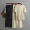 Dámské Nepravidelný úplet do O Neck Top dvoudílný Krátký rukáv Soupravy úzkých širokých nohavic s vysokým pasem