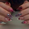 24 ks/sada Ručně vyráběné Nositelné Nehty Francouzský Okraj Červená Hvězda Jednobarevné Mandlového Tvaru Nail Art Nehtový Dílek