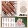 Ženy tisknou na nehty Středně falešné nehty s designem Nude Stick na akrylové nehty Lesklý úplný kryt Umělé nehty