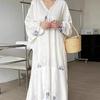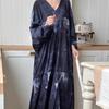 Móda Korejská elegance Jaro Léto Retro Rekreační styl Inkoustový potisk s výstřihem do V Volné Ležérní Šaty s netopýřím rukávem Dámské — koupit online v obchodě na marketplace Joom