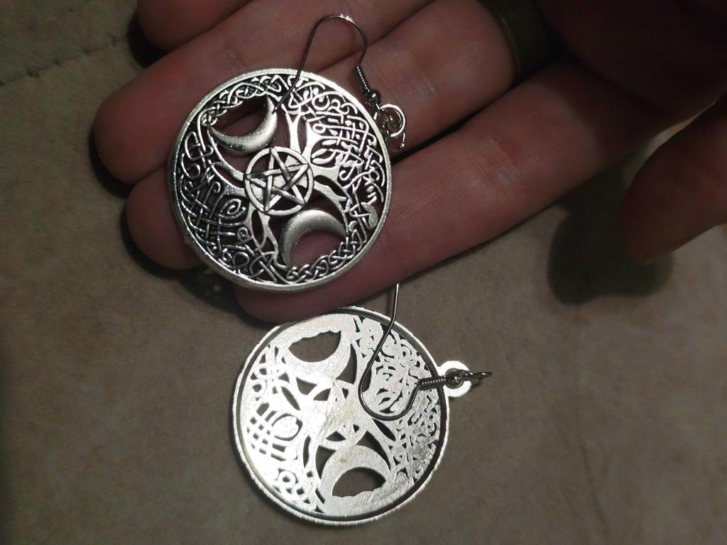 Módní gotický tmavý styl ženy vintage stříbrná barva trojitý měsíční přívěsek bohyně visící náušnice wicca čarodějnické gotické šperky — koupit online v obchodě na marketplace Joom