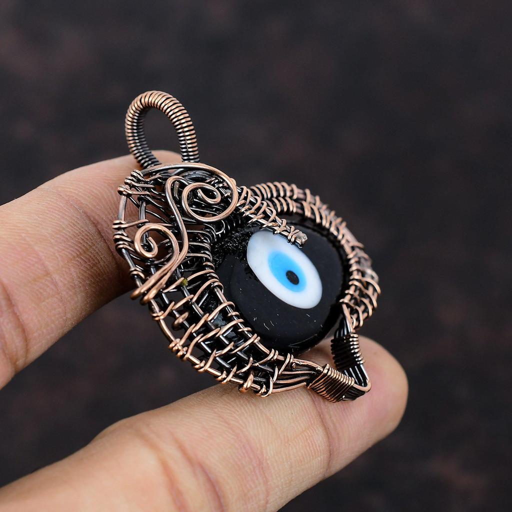 Black Color Evil Eye Pendant Copper Wire Wrapped Gemstone Pendant Stylish Pendant Copper Wire Jewelry Gift For Mom Handmade Ethnic Pendants — koupit online v obchodě na marketplace Joom