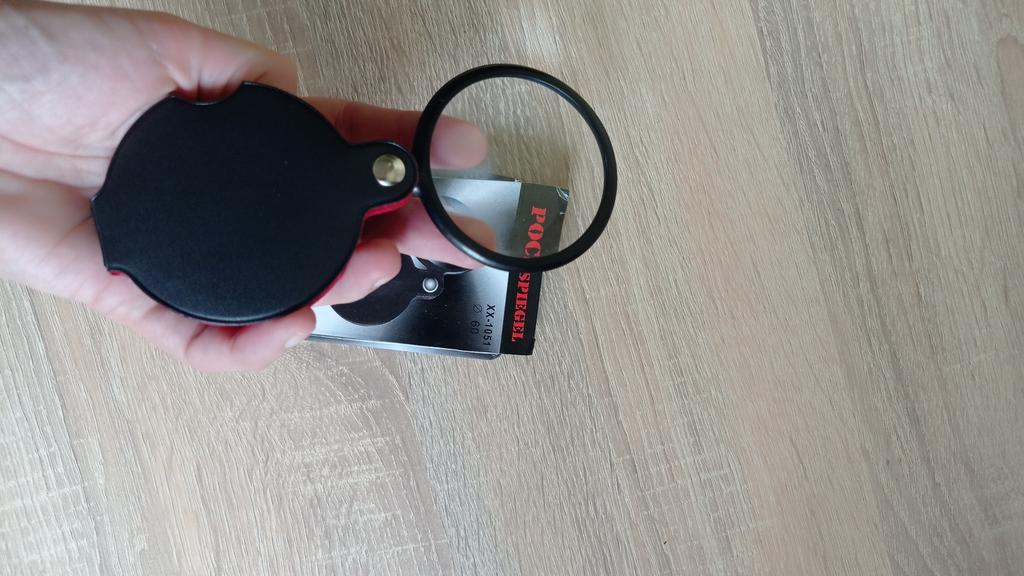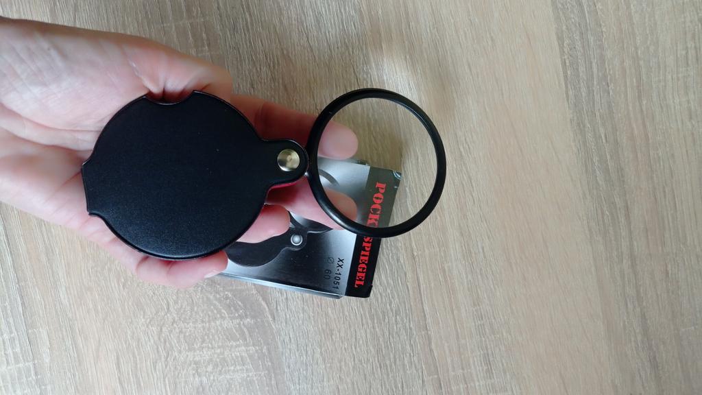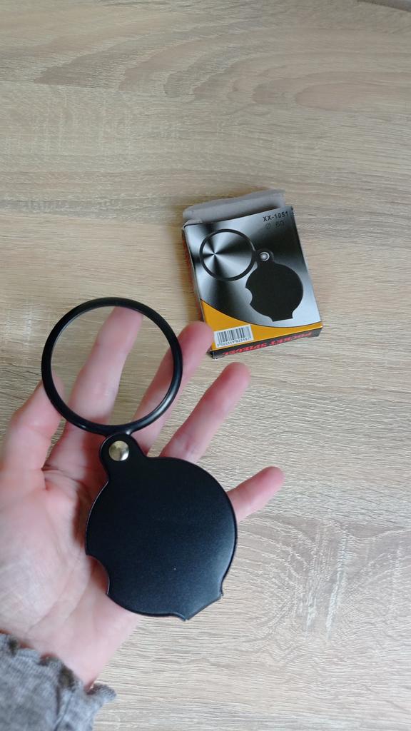 Kapesní skládací lupa. Přenosnost: Díky své kompaktnosti a skládací konstrukci se snadno nosí v kapse, peněžence nebo kabelce. Ochrana: Často má ochranné pouzdro z umělé kůže, které chrání čočku před poškozením. Jmenování: Ideální pro čtení drobného písma, kontrolu známek, mincí, šperků a také pro každodenní použití lidmi se slabým zrakem..