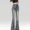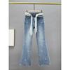 Crystal Rhinestone Diamond Bow Flared Slit Jeans Women Slight Bootcut Bell Bottom Denim Pant high waist plus size 3XL jean trouser