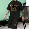 2Pcs Outfits For Men Casual Short Sleeve T-shirt And Drawstring Shorts Set For Summer Men's Clothing Loungewear Vacation Workout