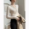 Sweater Women Bottoming Shirt 2024 Autumn Beige All-Match Thin Pullover Tops V-Neck Slim Cotton Pullover Grey Sweaters 24FS13097 — koupit online v obchodě na marketplace Joom