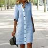 Letní dámské šaty Jednořadové polorukávy Stahovací límec Volné Jednobarevné Knoflíky Dojíždění Denní nošení Midi šaty — koupit online v obchodě na marketplace Joom