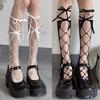 3 Pairs Gothic Lolita Stockings Mesh Lace Long Tube Socks Thin Fishnet Bow Tie Hollow Calf Sock