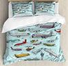 Letadlo Povlak na přikrývku Kreslený Letadlo Povlečení Americký Letadlo Potah na přikrývku Cloud Air Blue Sky, Červený Modrý Roztomilý Povlak na přikrývku