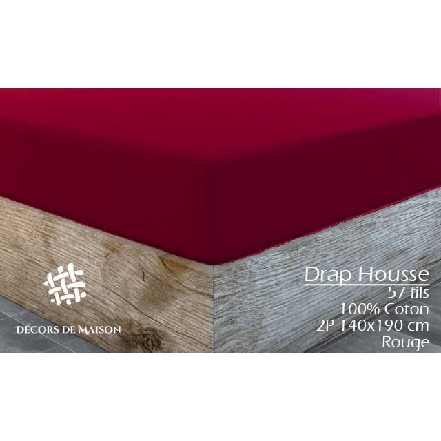 Drap Housse - Décors De Maison - 140x190 cm - Rouge - 100% Coton - Bonnet 25 cm