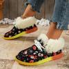 Fashion 2024 Winter New Women's Santa Print Canvas Shoes Fluffy Plush Lined Warm Slip-On Flat Shoes — koupit online v obchodě na marketplace Joom