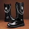 Fashion Trendy Motorcycle Boots PU Solid Color Collision Resistant Toe Tie Side Zipper Chain Decoration Trend High Tube Men Boots — koupit online v obchodě na marketplace Joom