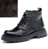 Pánské módní nové plus bavlněné kožené motorkářské boty větruodolné silná podrážka vnitřní zvýšení lokomotivní černé kotníkové boty D550