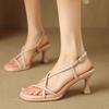 Fashion New Summer Heels Crossover Lace Square Toe Sandals Women's Stiletto Combination Stiletto Heel Roman Shoes