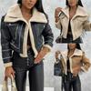 Bunda z umělé kůže Dámská PU Krátký silný teplý černý kabát Ženy Pilot Retro Lapel Sametový kabát Zimní Dámská Moto bunda — koupit online v obchodě na marketplace Joom