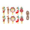 10pcs Mixed Styles Christmas Wood Clips Santa Bear Xmas Tree Photo Clips Clothespins DIY Photo Pegs for New Year Gift Bag Clip