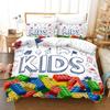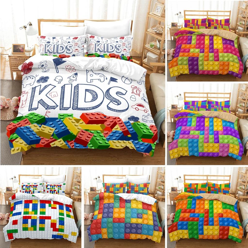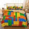 Barevné bloky Povlak na přikrývku KingQueen Size, Stavebnicová hračka Ložní souprava Dětská Chlapecká Dívčí Oranžová Modrá Zábavná Cihla Polyesterový Povlak na přikrývku