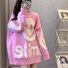 Fashion Loose in the Long Lazy Style All Over the Pullover Jacket Autumn and Winter New Smiling Face Knitted Long Sleeve Sweater Women's Wear