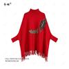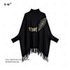 Autumn and Winter New Shawl Cape Female Letter Beads Embroidered Bat Sleeves Medium and Long Turtleneck Sweater Slim Knitted Sweater