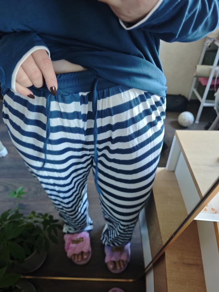 Plus Size Women's New Round Neck Long Sleeve Top Striped Printed String Trousers Home Wear Pajamas Set — koupit online v obchodě na marketplace Joom