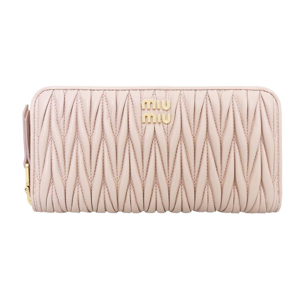 Peněženka 5ML506 2FPP Cipuria Matelassé Kůže Kovové Logo Kulatá Zipová Peněženka [Miu Miu] (dlouhá peněženka) Dámské [značka] [položka]