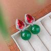 Autumn and winter jewelry set retro premium chalcedony pigeon blood red stud earrings S925 silver needle collarbone chain versatile woman — koupit zboží online s dopravou zdarma po celém světě!
