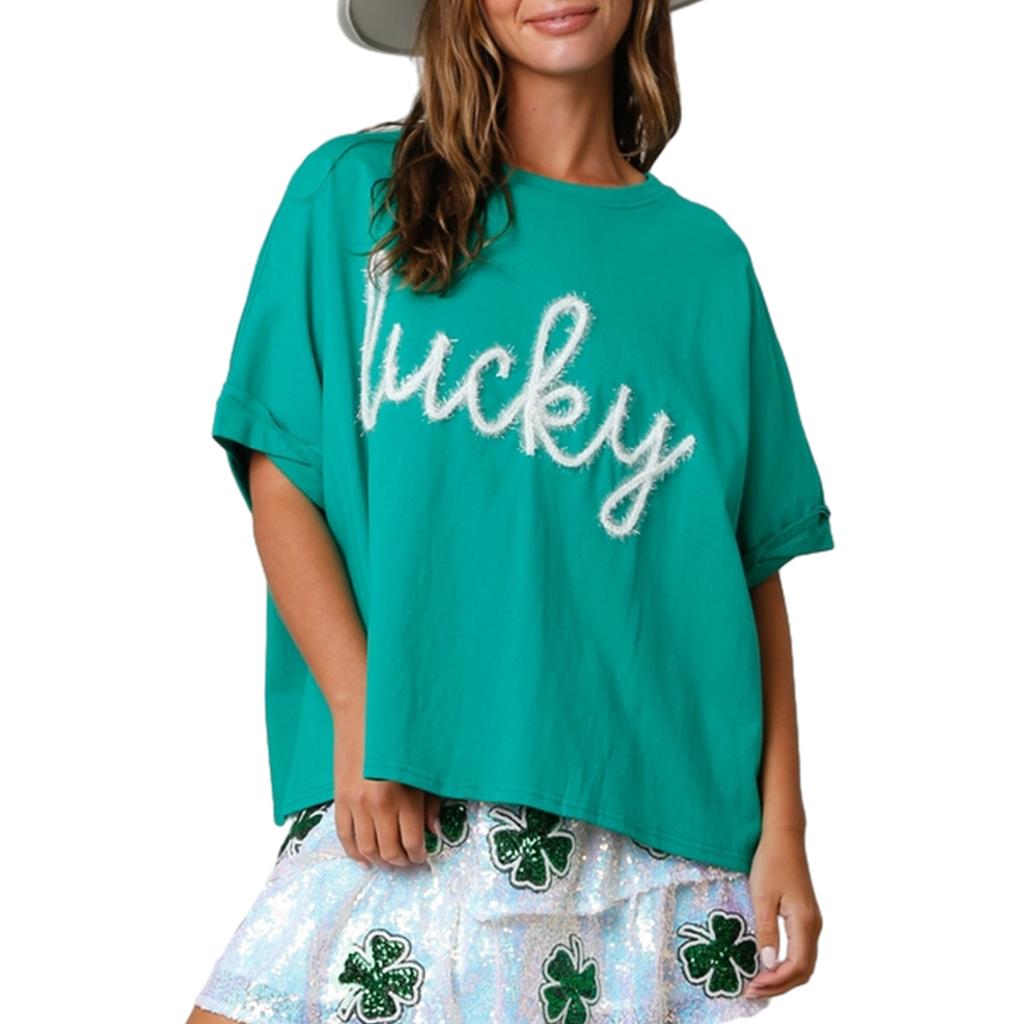Women's Irish Tops Fashion Letter Patchwork Print Short Sleeve Round Neck T-Shirts Blouses Aesthetic Clothes