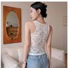 Actual Shot of New Summer Clothes with Crocheted Lace Stitching on The Back Lace-up Knitted Vest, Women's Hollow Strappy Top
