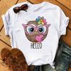Summer New Gothic Women Cute Owl Print T-Shirt Fashion Thin Short Sleeve T Shirt Harajuku Casual Pink Top Female Clothing Tshirt