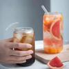 Cute Mug Drinking Glasses With Lid and Straw Cup Coffee Cups Cocktail Glass Bubble Tea Glass Water Juice Drinkware Kitchen Bar