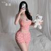 Pajamas sexy mesh pajamas women's print suspender skirts see-through clothes
