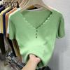 Móda Podzim Ledová Hedvábná košile s krátkým rukávem Ženy Léto v západním stylu Tenký bílý svetr Half Top