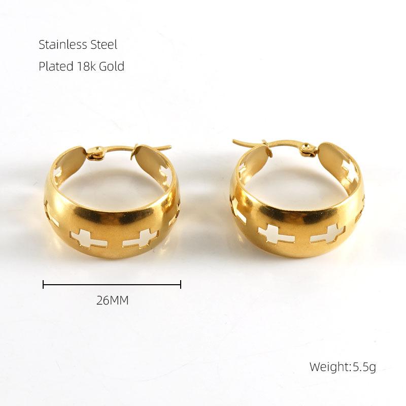 Stylish stainless steel large round hollow cross earrings, high-end earrings, exaggerated simplicity and fashion women