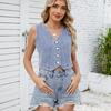 YYFS Dámská móda Ležérní Léto Jaro Jednobarevný potisk Halenky a košile bez rukávů s výstřihem do V