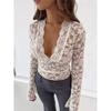 Summer V Neck Long Sleeve Lace Sexy Shirt Women Fashion Tops Vintage Solid Slim Fit White Blouse for Women Elegant Crochet Shirt Female Clothing 26442